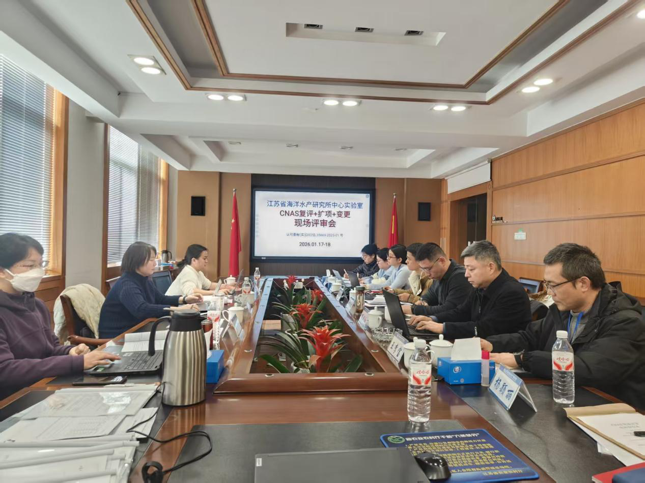 2026年1月17至18日,江蘇省海洋水產(chǎn)研究所中心實(shí)驗(yàn)室接受了中國(guó)合格評(píng)定國(guó)家認(rèn)可委員會(huì)(CNAS)審核組進(jìn)行的“復(fù)評(píng)+擴(kuò)項(xiàng)+變更”現(xiàn)場(chǎng)評(píng)審,并順利通過(guò)。