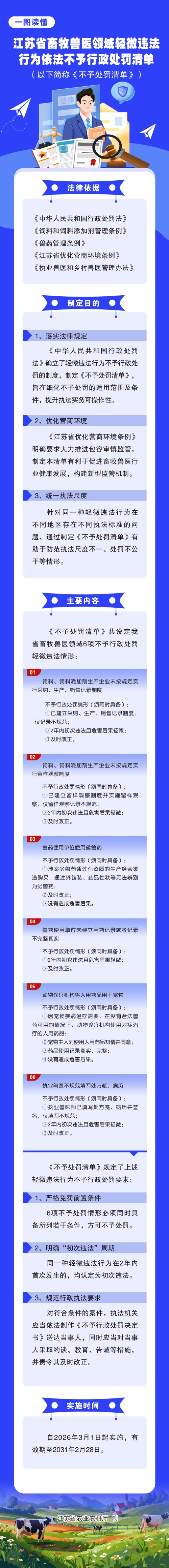 一圖讀懂 | 《江蘇省畜牧獸醫(yī)領(lǐng)域輕微違法行為依法不予行政處罰清單》解讀